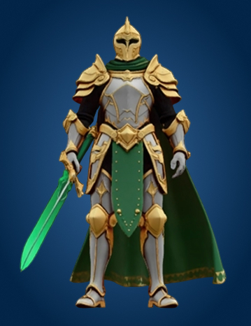 Prompt: “Guardian knight with a gold helmet and emerald sword”
