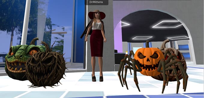 Take a look at how naturally these terrifying pumpkins fit into the Second Life office environment. Their creepy faces and twisted shapes add a perfect Halloween atmosphere, turning an ordinary space into something much more dramatic and fun. It’s a great example of how AI-generated mesh objects can instantly transform a location and bring a bit of spooky character to your land.