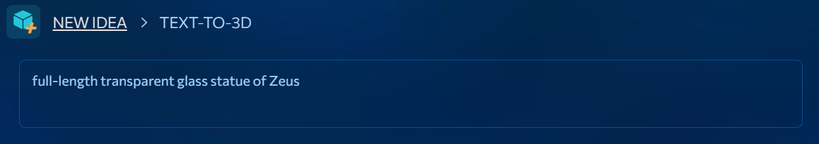 Describe the object you want to create. Even a short prompt can produce a clear and interesting result. However, the more detailed your description is, the more specific the generated object will be.