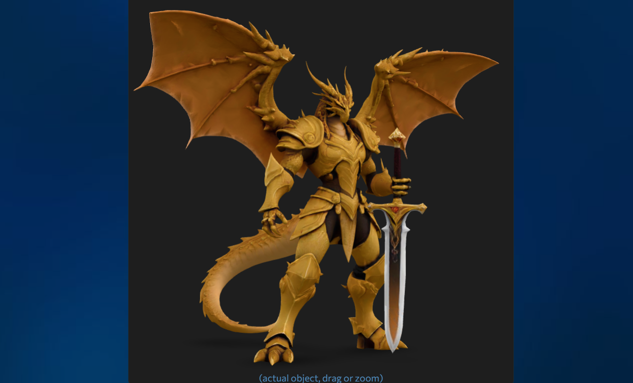 As an example I created an anthropomorphic dragon with a sword.