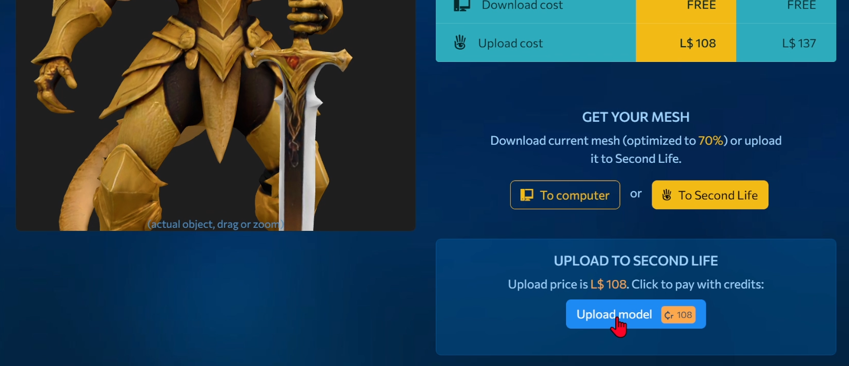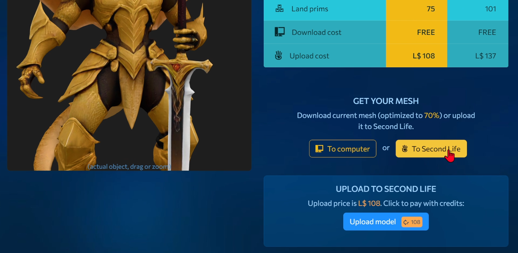Upload 3D Models to Second Life Directly from MeshZEUS